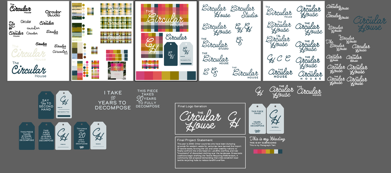 From there, I mapped out possible futures, user personas, and community-driven solutions, exploring how design could intervene at both a systems and local level. This process included brand exploration, color and material studies, typographic experimentation, and the development of physical artifacts such as tags, signage, posters, and recycled-paper samples.