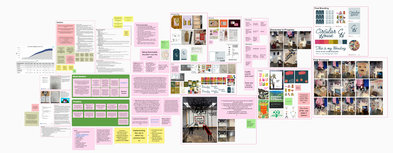 This project was developed through an extensive research and ideation process that combined systems thinking, material experimentation, and speculative world-building. I began by investigating the environmental impact of textile waste, fast fashion, and global export systems, using data, articles, and visual research to understand the scale of the issue.