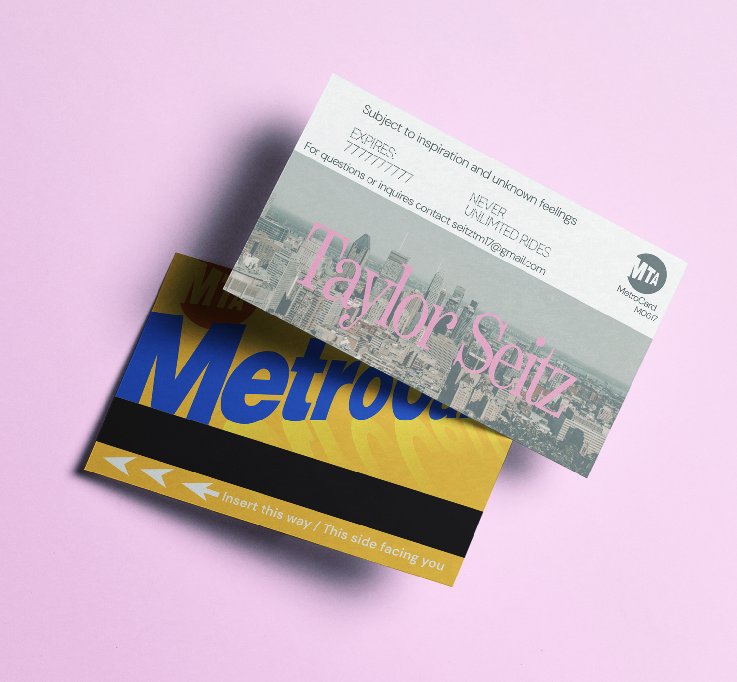 This poster-zine was created as part of a seven-week project centered on exploring personal creative practice while introducing a range of design disciplines. The final deliverables included a printed poster-zine with a subway car bellyband and a New York Metro–themed insert card. The objective was to visually express my design identity in a way that feels both playful and intentional.